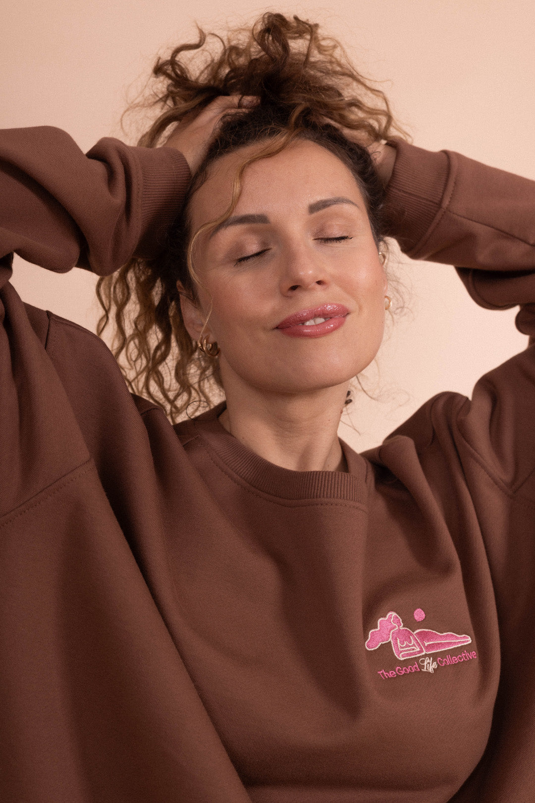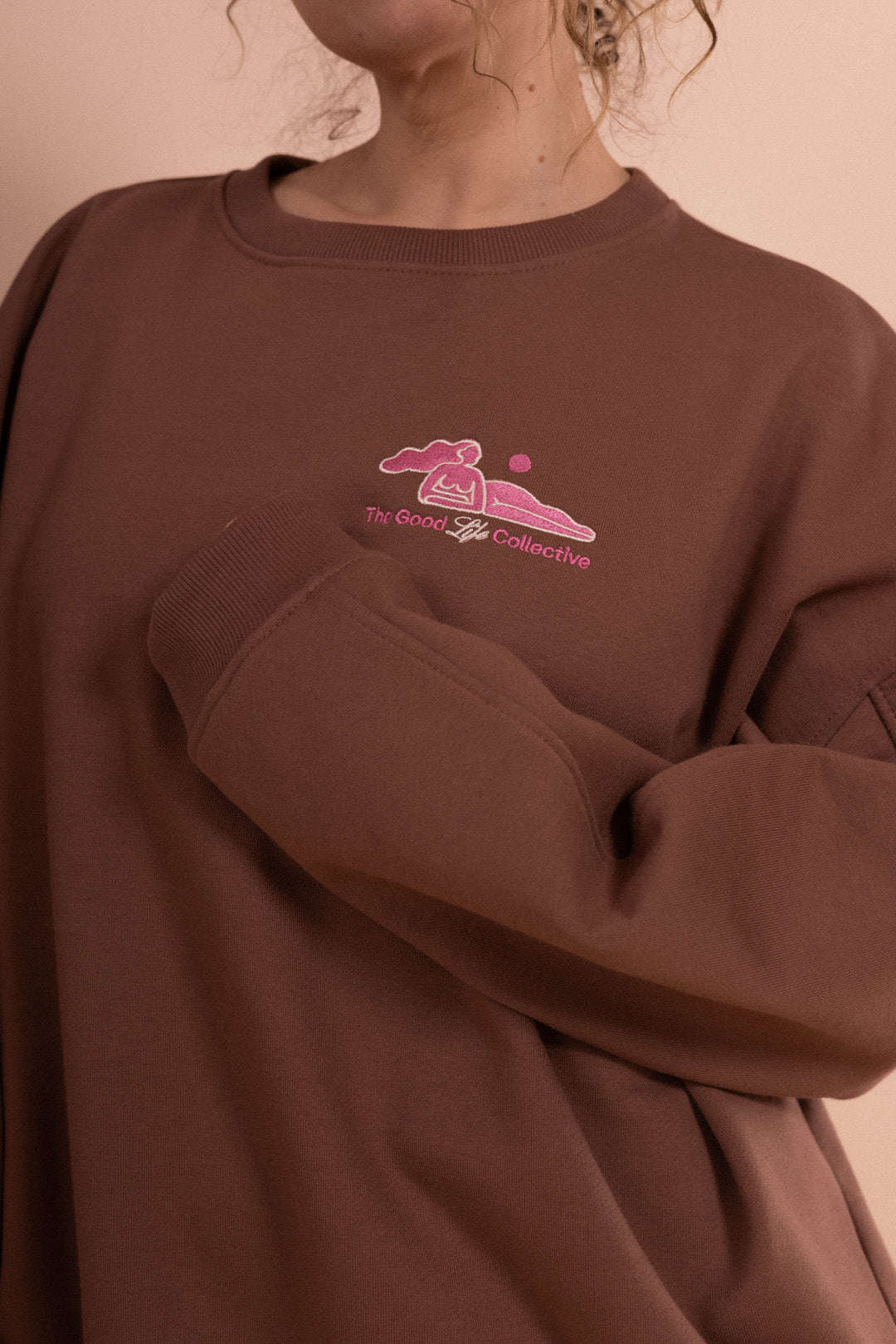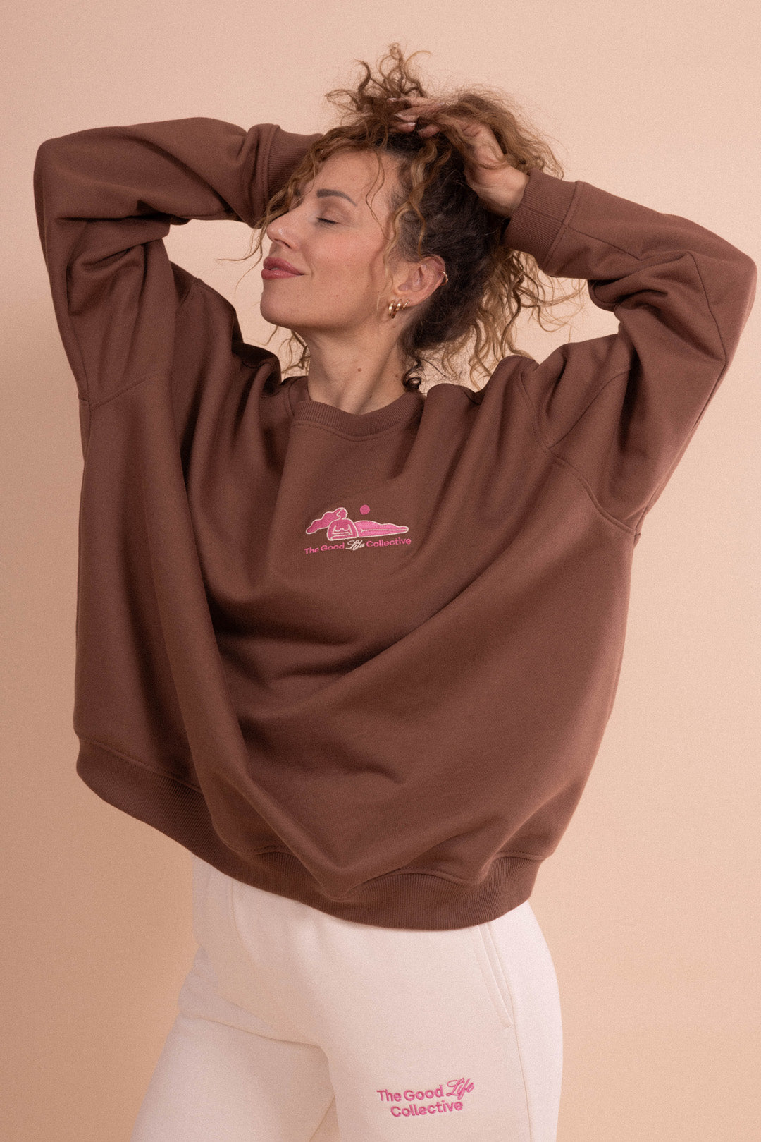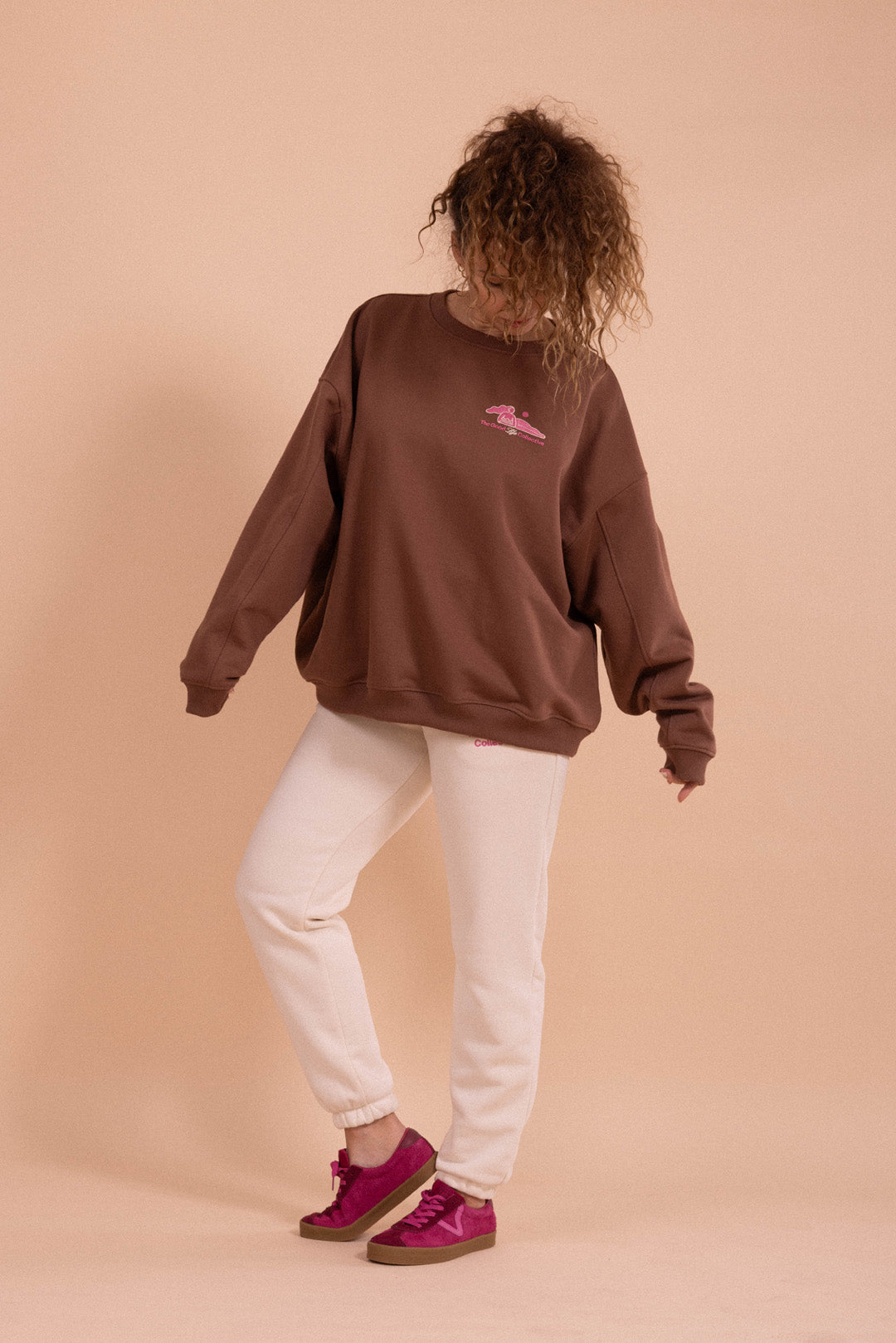 Jak ją nosić? Idealnie komponuje się ze spodniami dresowymi KIMMY lub COMFTY w odcieniu cotton oats – ich mięsista dzianina świetnie współgra z fakturą bluzy. Jeśli wolisz bardziej dopasowane outfity, wybierz czekoladowe bawełniane legginsy i skarpetki w kolorze ecru. A jeśli masz ochotę na jeansy, w tym sezonie królują szerokie fasony ze sztruksu.